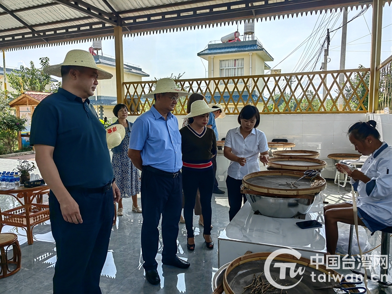 考察調(diào)研耿馬縣賀派鄉(xiāng)石斛加工廠(圖片來源:云南省臺辦)