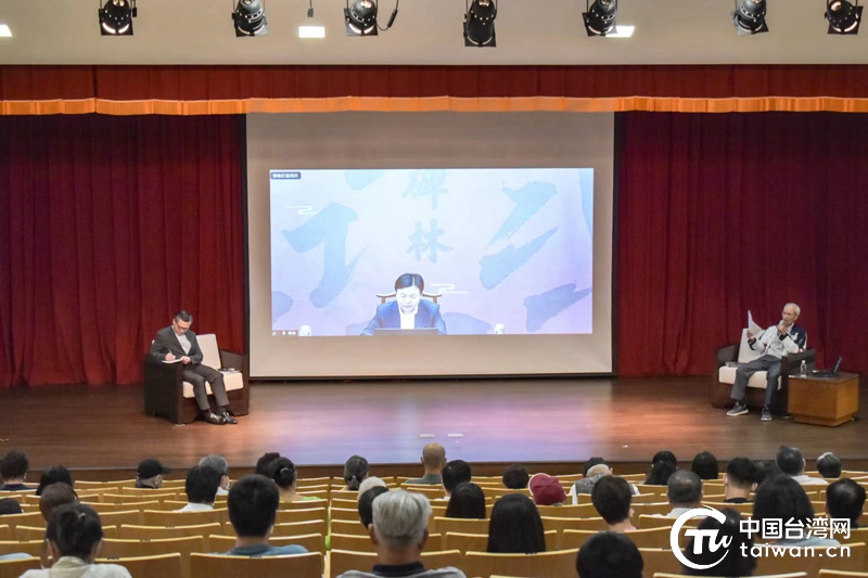 開幕式后,西安碑林博物館副館長劉東平和長期在臺推廣書法教育的臺灣藝術(shù)大學(xué)教授李郁周,通過兩岸視頻連線的方式,舉辦以“書法的時代美感與意義——從西安碑林著名碑藏談起”為主題的書藝交流講座。