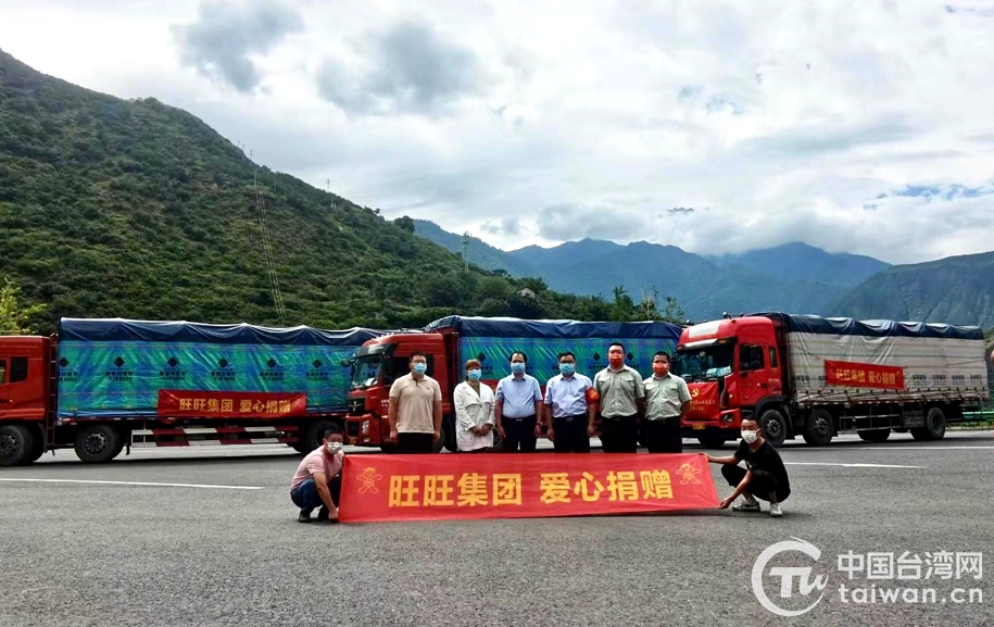 旺旺成都總廠與瀘定縣委縣政府進行賑災物資交接(圖片來源:四川省臺辦)