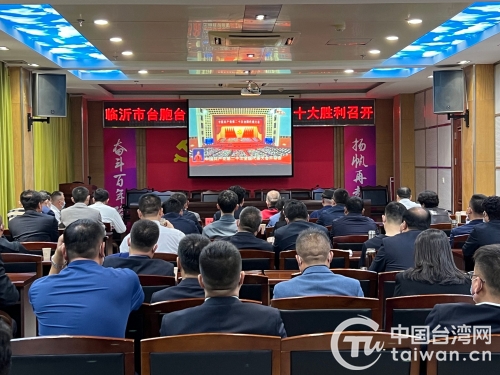 臨沂市臺港澳同胞、臺資企業(yè)、臺屬企業(yè)代表收聽收看二十大開幕會(圖片來源:山東省臺港澳辦)