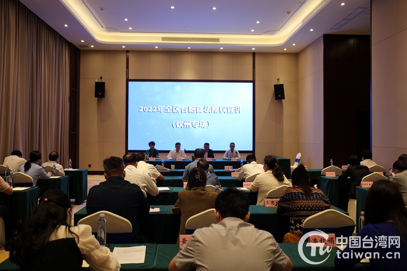 中國臺灣網(wǎng)11月25日訊 近日,廣西臺辦普法宣講組走進欽州舉辦臺胞普法維權(quán)宣講系列活動,宣介二十大精神,在欽臺胞臺商陸配和欽州市臺辦系統(tǒng)干部、有關(guān)市直部門負責人等40余人參加宣講活動。