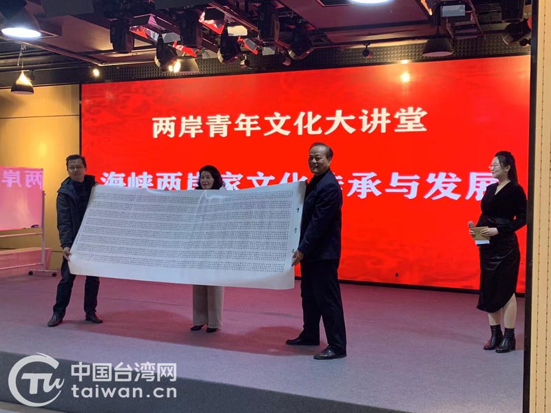 當(dāng)日,臺(tái)灣知名文化學(xué)者韓榮華現(xiàn)場(chǎng)授課,為“線下+云上”的40余位兩岸青年講解《海峽兩岸家文化傳承與發(fā)展》。