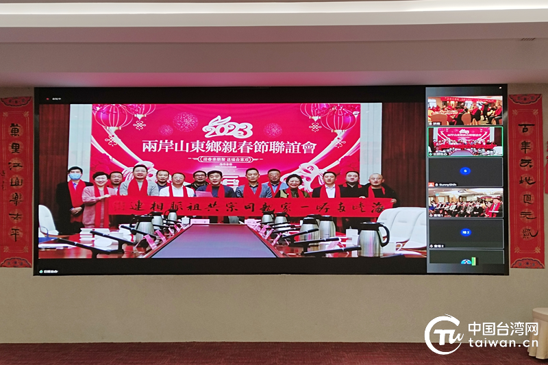 中國臺灣網(wǎng)1月15日訊 海峽難隔鴻雁,歲月不改人心。為弘揚(yáng)中華傳統(tǒng)文化,促進(jìn)兩岸同胞心靈契合,1月14日農(nóng)歷小年,山東省臺屬聯(lián)誼會、濟(jì)南市臺屬聯(lián)誼會、日照市臺屬聯(lián)誼會與臺灣山東同鄉(xiāng)會共同舉辦了“迎春親朋聚 送福合家歡”兩岸山東鄉(xiāng)親春節(jié)聯(lián)誼會,為兩岸鄉(xiāng)親提供了“敘親情、聯(lián)鄉(xiāng)誼,謀和平、話發(fā)展”的平臺。濟(jì)南、日照市臺屬聯(lián)誼會代表和臺灣山東同鄉(xiāng)會、各縣市山東同鄉(xiāng)會負(fù)責(zé)人及山東日照同鄉(xiāng)會代表240余人,分別在濟(jì)南、日照、臺北三地活動現(xiàn)場,通過視頻連線的方式參加了聯(lián)誼活動,共同欣賞歌舞表演、共慶中華民族傳統(tǒng)節(jié)日新春佳節(jié)。