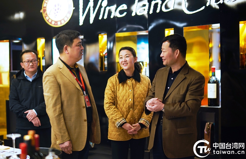 鄧恒源主任(右一)、周紅斌部長(右二)與臺(tái)企威年華云集酒莊負(fù)責(zé)人深入交流,了解企業(yè)生產(chǎn)經(jīng)營情況和存在困難問題。(中國臺(tái)灣網(wǎng)發(fā))