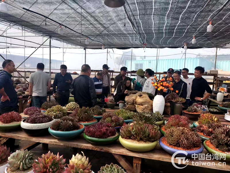 在大石板多肉花卉產(chǎn)業(yè)園玉溪云耕農(nóng)業(yè)有限公司考察(圖片來源:玉溪市臺(tái)辦)