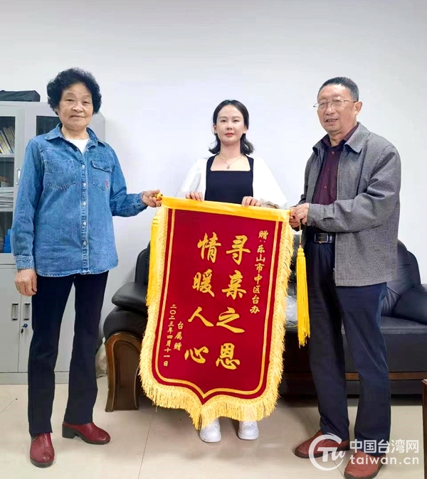中國臺灣網(wǎng)4月27日訊 近日,一位年逾古稀的老人在家人陪同下來到四川樂山市市中區(qū)臺辦,將一面印有“尋親之恩 情暖人心”的錦旗送到工作人員手中。她激動地表示,全家人心中多年的牽掛終于“落了地”。