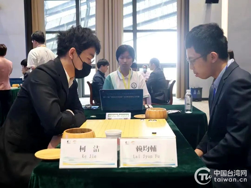 柯潔對(duì)陣賴均輔(圖片來(lái)源:衢州市臺(tái)辦)