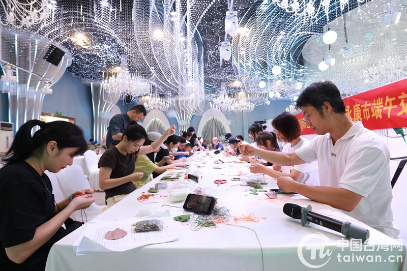 中國臺灣網(wǎng)6月12日訊 “五色新絲纏角粽。金盤送。生綃畫扇盤雙鳳。正是浴蘭時節(jié)動。萬蒲酒美清尊共!苯眨揽凳50余名臺胞臺屬歡聚一堂,一起包粽子、做香包,共同慶祝端午傳統(tǒng)佳節(jié)。