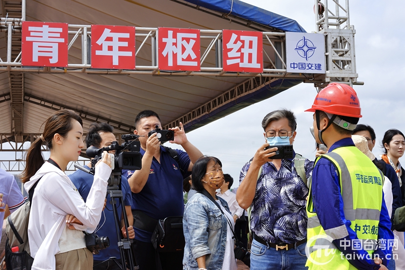 兩岸媒體人采訪平陸運(yùn)河青年樞紐建設(shè)工程項(xiàng)目負(fù)責(zé)人(圖片來(lái)源:廣西臺(tái)辦)