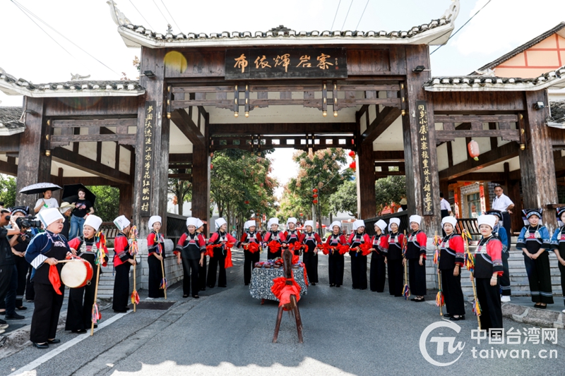 村寨門(mén)口,熱情的布依族兒女身著節(jié)日盛裝,手腕上掛著香囊和雞蛋,唱著動(dòng)聽(tīng)的敬酒歌,端上香甜的糯米酒,迎接臺(tái)灣同胞的到來(lái)。
