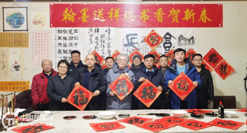 “四海升平龍獻瑞,九州盛世展宏圖”“龍行天下開新運,春滿神州照吉祥”……活動現(xiàn)場氣氛熱烈、翰墨飄香,書法家們提筆揮毫,現(xiàn)場書寫飽含美好祝愿的“福”字和春聯(lián),臺胞們一邊欣賞寫好的春聯(lián),一邊挑選鐘意的聯(lián)語,現(xiàn)場一片歡聲笑語,彌漫著濃濃“年味兒”。