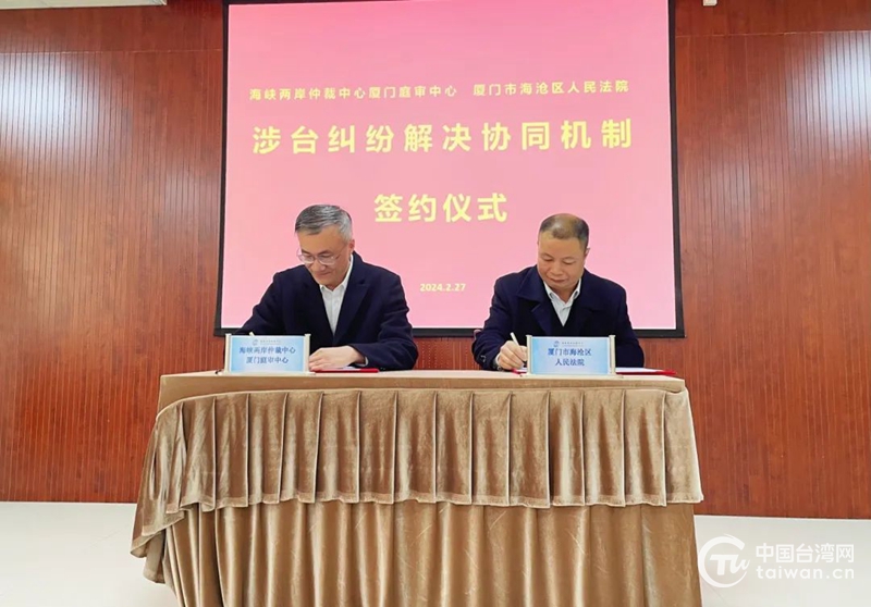 中國(guó)臺(tái)灣網(wǎng)3月4日訊 近日,廈門(mén)市海滄區(qū)人民法院和海峽兩岸仲裁中心廈門(mén)庭審中心就共建涉臺(tái)糾紛解決協(xié)同機(jī)制舉行簽約儀式。