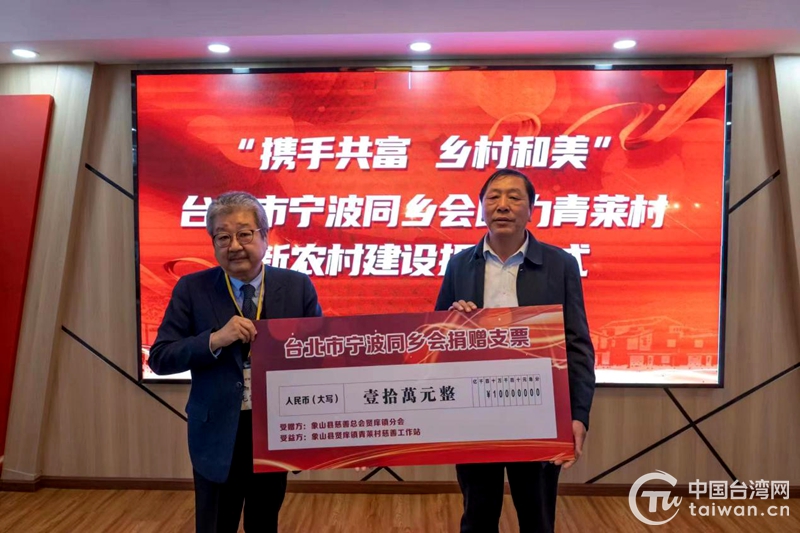 中國(guó)臺(tái)灣網(wǎng)3月18日訊 近日,“攜手共富·和美鄉(xiāng)村”助力寧波市青萊村新農(nóng)村建設(shè)捐贈(zèng)儀式在象山縣賢庠鎮(zhèn)青萊村舉行,臺(tái)北市寧波同鄉(xiāng)會(huì)理事長(zhǎng)毛家瑜代表該會(huì)向青萊村捐贈(zèng)10萬(wàn)元,定向用于新農(nóng)村建設(shè)。