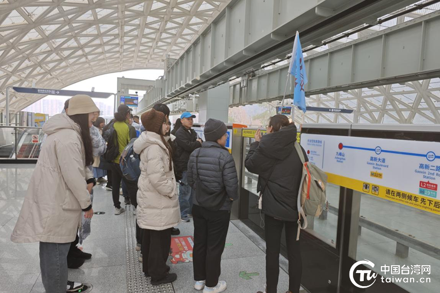臺(tái)灣大學(xué)生體驗(yàn)光谷無(wú)人駕駛空軌。(中國(guó)臺(tái)灣網(wǎng)發(fā))