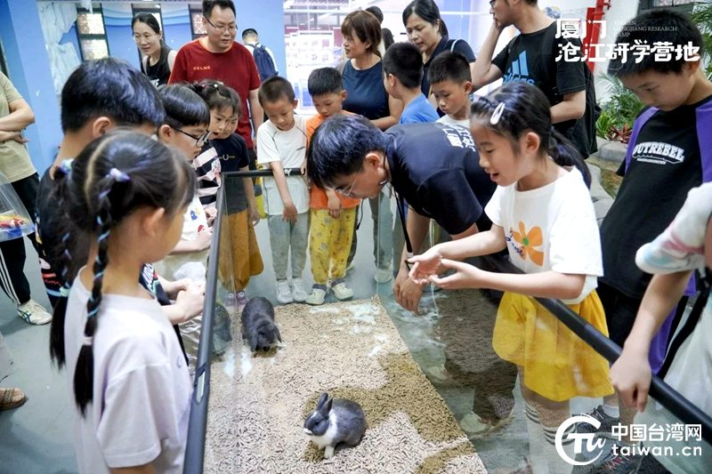 兩岸青少年觀看小動物。(中國臺灣網(wǎng)發(fā))