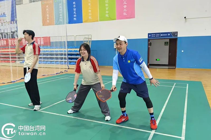 黃緯纮在宜昌三峽技術學院做師生匹克球推廣。(中國臺灣網(wǎng)發(fā))
