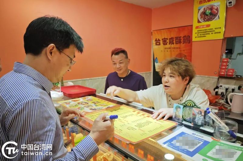 潘佳輝的妻子李琦雯正在耐心的給新客戶介紹套餐菜品。(中國臺灣網(wǎng)發(fā))