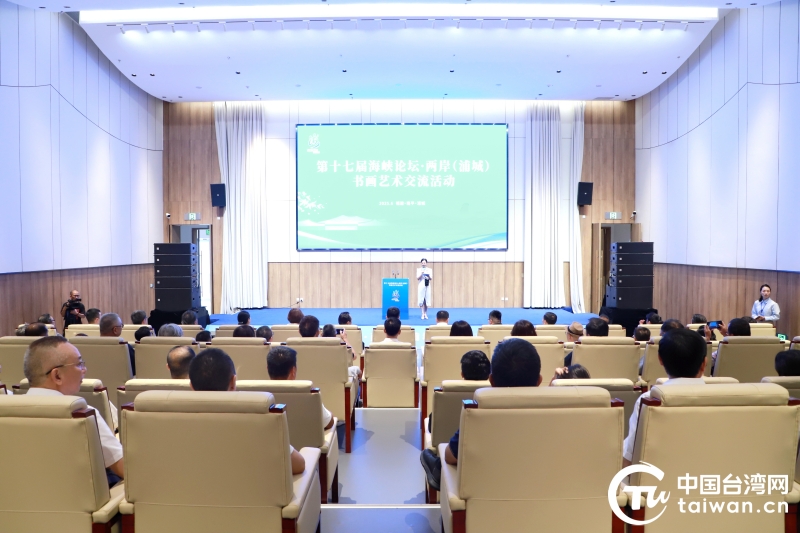 中國臺灣網(wǎng)6月26日訊 6月25日,第十七屆海峽論壇·兩岸(浦城)書畫藝術(shù)交流活動在福建省浦城美術(shù)館(范迪安美術(shù)館)舉行。來自兩岸的150余位書畫藝術(shù)家、書畫愛好者,齊聚夢筆山下,共賞筆墨丹青,暢敘兩岸情誼。