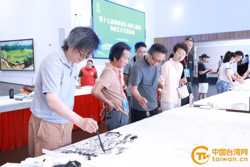 “海峽兩岸書畫情,揮毫潑墨共此時”書畫名家現(xiàn)場筆繪。(中國臺灣網(wǎng)發(fā))