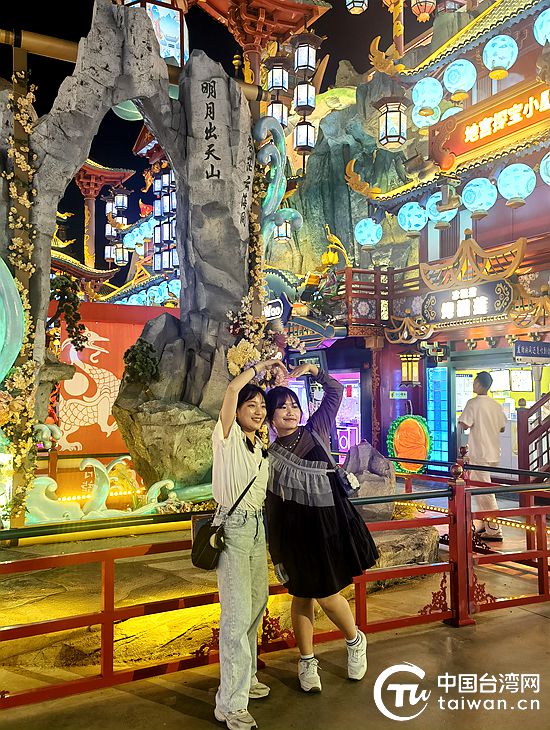 臺灣青年打卡明月山海間不夜城。(中國臺灣網(wǎng)發(fā))