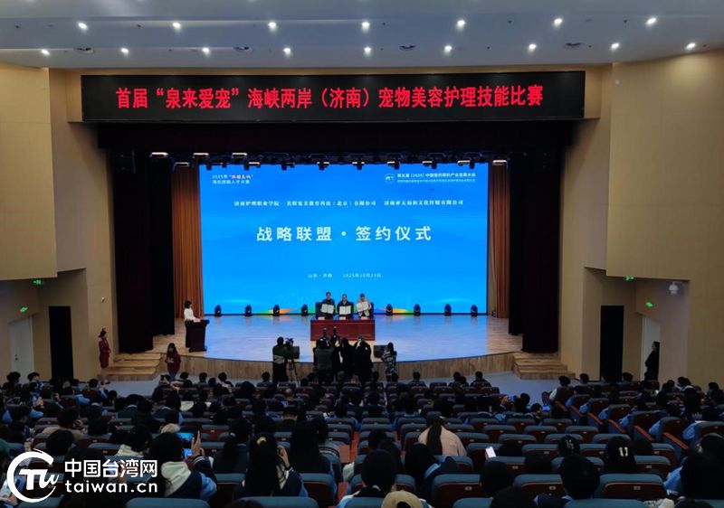 賽前舉行了啟動儀式。濟南護理職業(yè)學院書記周敬在致辭中表示,希望通過比賽,兩岸參賽選手能夠賽出水平、賽出友誼,讓比賽成為兩岸青年攜手并肩的起點。臺青代表在發(fā)言中表示,期待通過比賽與大陸同行相互切磋、共同進步,為推動兩岸寵物行業(yè)融合發(fā)展貢獻一份力量。濟南護理職業(yè)學院、名將寵美教育科技(北京)有限公司、亞太易和文化傳媒有限公司在啟動儀式上簽訂三方戰(zhàn)略合作協(xié)議。濟南市臺辦主任趙博與濟南護理職業(yè)學院院長曹愛民共同為“泉來愛寵”魯臺產(chǎn)業(yè)聯(lián)盟揭牌。