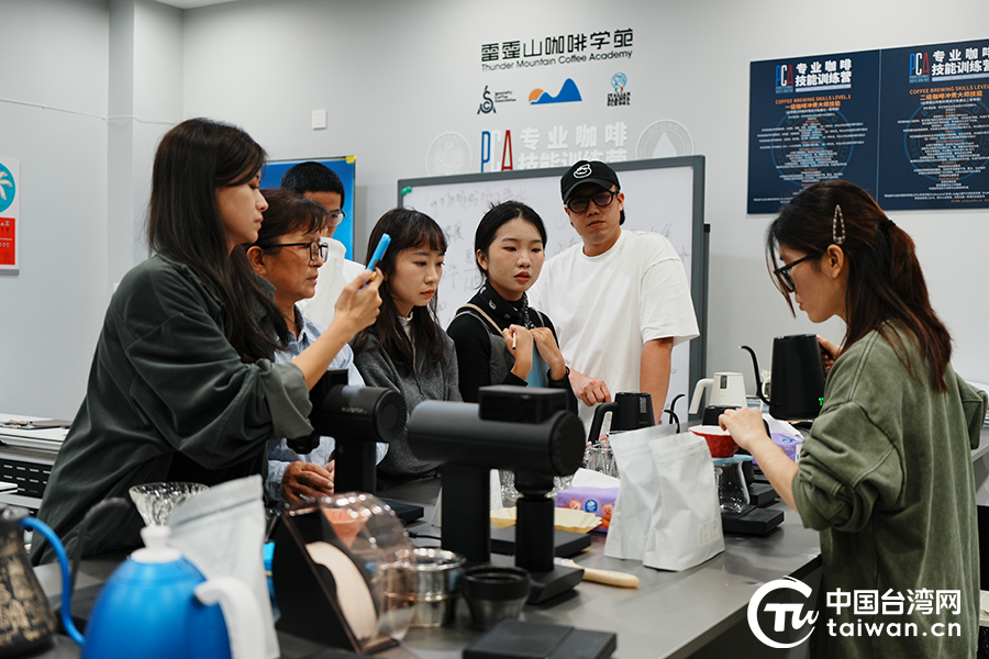 兩岸青年進行咖啡技藝交流。(中國臺灣網(wǎng)發(fā))