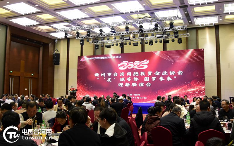 中國臺灣網(wǎng)12月31日訊 12月27日,贛州市臺灣同胞投資企業(yè)協(xié)會舉行第九屆理監(jiān)事就職典禮暨2025年迎新聯(lián)誼會。江西省臺辦主任蔡清平出席活動并講話,贛州市委常委、副市長黃蓬勃出席活動并致辭。全國臺企聯(lián)福建江西片區(qū)和廈門、泉州、平潭、龍巖、東莞、深圳以及江西省內(nèi)各市臺協(xié)代表,贛州市臺協(xié)會員、臺企代表等170余人歡聚一堂,共賀新年、共話情誼、共商發(fā)展。