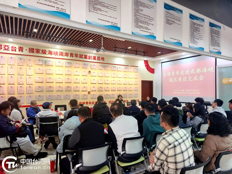 臺(tái)灣青年在在亞臺(tái)青海峽青年創(chuàng)業(yè)園與在川創(chuàng)業(yè)臺(tái)胞深入座談交流。(中國臺(tái)灣網(wǎng)發(fā))