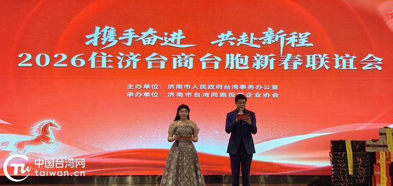 中國臺灣網1月28日訊 1月24日,由濟南市臺辦主辦、濟南市臺協(xié)會承辦的“攜手奮進 共赴新程”2026住濟臺商臺胞新春聯誼會成功舉辦。山東省臺辦一級巡視員王清玉,濟南市原副市長、市臺協(xié)會常務副會長尹清忠,濟南市臺辦主任趙博、副主任李學忠,濟南臺協(xié)會會長王克璋出席,200余位住濟臺商臺胞參加活動。