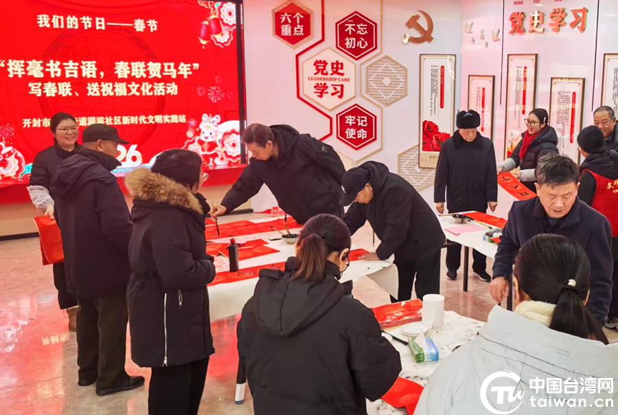 中國(guó)臺(tái)灣網(wǎng)2月3日訊 為傳承中華優(yōu)秀傳統(tǒng)文化,營(yíng)造歡樂(lè)祥和的新春氛圍,近日,開(kāi)封市城鄉(xiāng)一體化示范區(qū)臺(tái)辦組織開(kāi)展“揮毫?xí)Z(yǔ) 春聯(lián)賀馬年”文化交流活動(dòng),邀請(qǐng)轄區(qū)臺(tái)胞臺(tái)屬和群眾參加,讓大家在紅紅火火的年味兒中感受傳統(tǒng)文化魅力,共迎新春佳節(jié)。