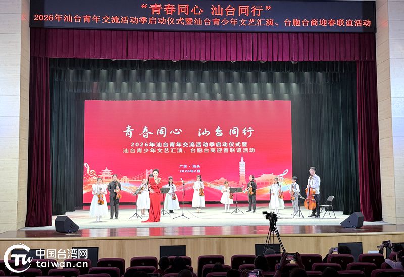 中國臺灣網(wǎng)2月4日訊 2月1日,由汕頭市臺灣事務(wù)局主辦,汕頭文化藝術(shù)學(xué)校、臺灣夢想起飛樂團(tuán)、臺灣穎樂室內(nèi)樂團(tuán)承辦的“青春同心 汕臺同行”2026年汕臺青年交流活動季啟動儀式暨汕臺青少年文藝匯演、在汕臺胞迎春聯(lián)誼活動舉行。團(tuán)市委、市青聯(lián)等汕頭青年代表,市臺盟、市臺聯(lián)、市臺商協(xié)會等在汕臺胞臺商代表,與臺灣夢想起飛樂團(tuán)、南投縣青少年藝術(shù)團(tuán)的臺灣同胞齊聚一堂,以文藝為媒架起交流橋梁,共促汕臺青年連心聯(lián)誼、攜手同行。