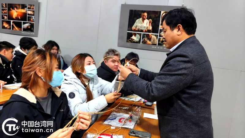 臺(tái)灣青年跟隨濰坊風(fēng)箏非遺傳承人王永訓(xùn)一步一步學(xué)做風(fēng)箏。(中國(guó)臺(tái)灣網(wǎng)發(fā))