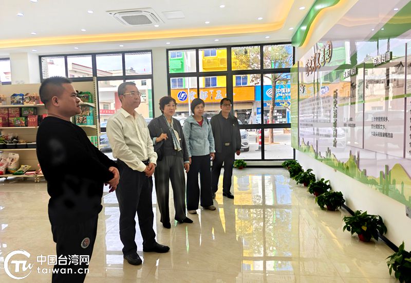 梁瓊榮一行在樟鋪鎮(zhèn)圩鎮(zhèn)會客廳參觀。(中國臺灣網發(fā))