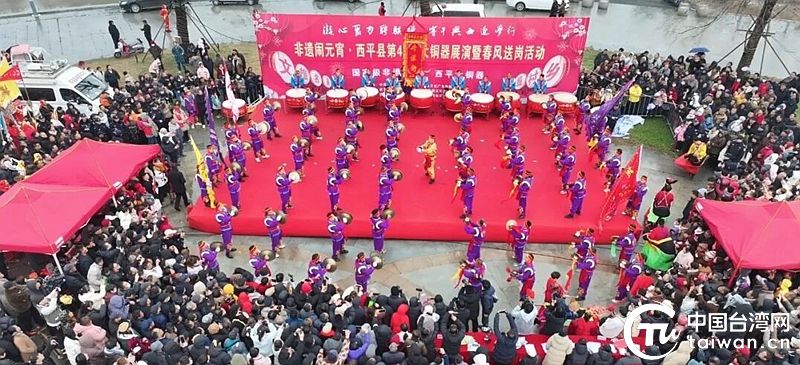 活動現(xiàn)場,非遺銅鼓展演氣勢恢宏、熱鬧非凡,鏗鏘有力的鼓點、精彩靈動的表演,充分展現(xiàn)了西平傳統(tǒng)民俗文化的獨特魅力,吸引臺胞、臺屬與廣大群眾駐足觀看、共慶佳節(jié)。