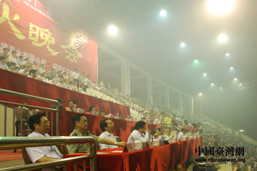 原民農(nóng)工民主黨主席蔣正華等與來自海峽兩岸的客商及寧德當(dāng)?shù)厝罕姽餐^看了首屆海峽兩岸電機(jī)電器博覽會音樂焰火晚會。(中國臺灣網(wǎng) 王偉 攝)