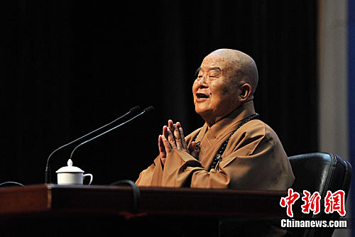 4月5日,星云大師是于廈大九十周年校慶之際,前來廈大參加“走近大師”系列講座,并發(fā)表“空有之關系”的演講。中新社發(fā) 王東明 攝