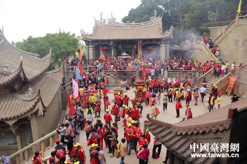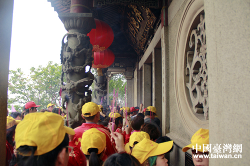 媽祖誕辰愈近,來湄洲媽祖祖廟謁祖的普通進香團、大型進香團劇增,圖為4月20日早上媽祖廟進香人潮。(中國臺灣網(wǎng) 楊麗 攝)