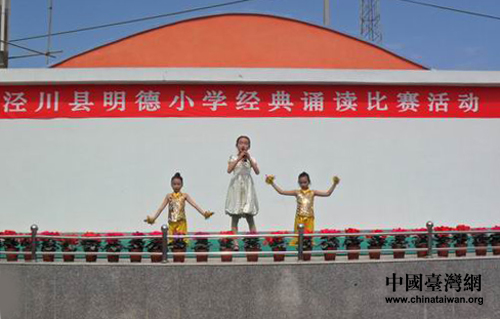 甘肅涇川縣舉辦明德小學(xué)經(jīng)典誦讀比賽活動(圖片來源:甘肅省臺辦)