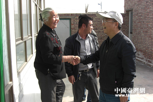 甘肅省臺辦主任趙少智在靖遠縣劉川鄉(xiāng)慈濟大愛村,與村民親交談。