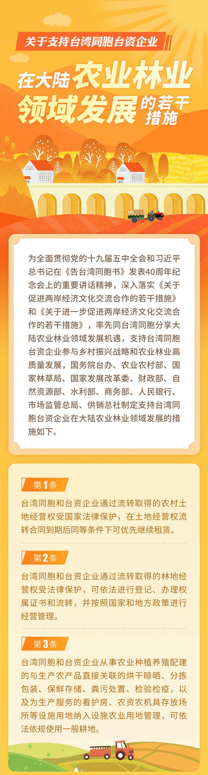 《關(guān)于支持臺(tái)灣同胞臺(tái)資企業(yè)在大陸農(nóng)業(yè)林業(yè)領(lǐng)域發(fā)展的若干措施》(全文圖解)