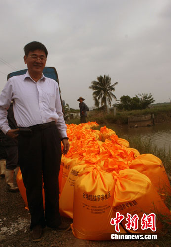 28日,臺資海南新海洋水產(chǎn)有限公司總經(jīng)理劉財添,迎來海南省政府支持災后恢復生產(chǎn)的第一批魚苗。關向東 攝