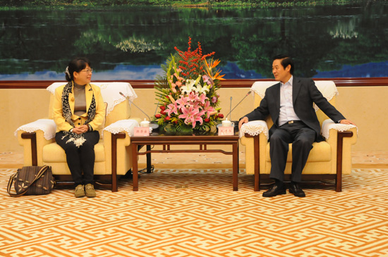 中共四川省委書記劉奇葆會(huì)見應(yīng)邀請(qǐng)來訪的臺(tái)灣長(zhǎng)青村敬老院負(fù)責(zé)人陳芳姿 (李華軍攝)