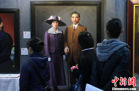 3月6日,北京一文化公司為紀(jì)念辛亥革命一百周年推出的孫中山與宋慶齡油畫像在北京一禮品展覽會上展出。據(jù)悉,這些畫像將贈予北京宋慶齡故居。今年是辛亥革命一百周年,大陸商家也適時推出了各種辛亥革命紀(jì)念品。中新社發(fā) 蘇丹 攝