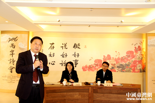 中國(guó)臺(tái)灣網(wǎng)12月19日臺(tái)灣高雄訊(記者 楊永青) 為弘揚(yáng)中華優(yōu)秀詩(shī)歌文化,促進(jìn)兩岸詩(shī)歌的繁榮與發(fā)展,2016年兩岸詩(shī)會(huì)于12月18日在臺(tái)灣佛光山隆重開(kāi)幕!爸袊(guó)是詩(shī)的國(guó)度,詩(shī)是中國(guó)文化的根。中國(guó)百年新詩(shī),是中西方文化碰撞而來(lái),以西方的形式,表達(dá)中國(guó)的精神。兩岸的新詩(shī),都傳達(dá)著中華民族詩(shī)意、詩(shī)化的生活傳統(tǒng)!焙D鲜∨_(tái)辦主任劉耿如此闡述兩岸詩(shī)會(huì)的精神內(nèi)涵。