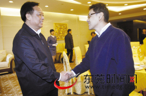 東莞市委副書記、市長李毓全(左)會見了臺灣華科董事長焦佑衡(右)一行 記者 陳帆 攝