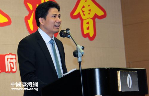 湛江市臺商協(xié)會會長蔡佳霖致辭。(圖片來源:湛江市臺辦)