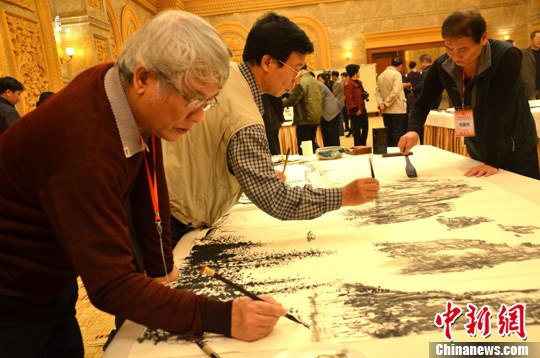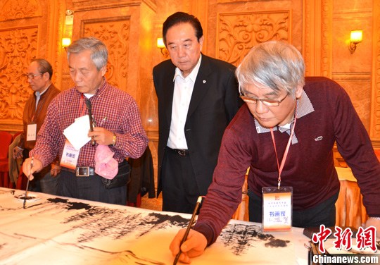 圖為臺灣畫家在作畫。中新社發(fā) 黃耀輝 攝