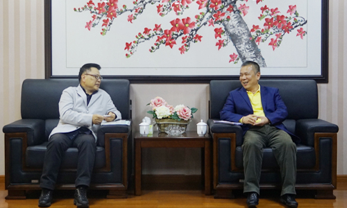 廣東省臺辦主任黃耿城(右)會見臺灣工商團(tuán)體秘書長聯(lián)誼會秘書長黃章富