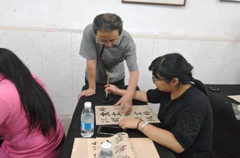 嘉應(yīng)學院麻愛民教授現(xiàn)場指導營員學習書法