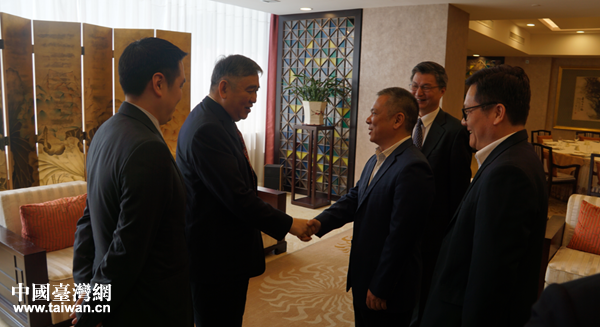 廣東省臺辦主任黃耿城會見臺灣宏仁集團總裁王文洋。(圖片來源:廣東省臺辦)